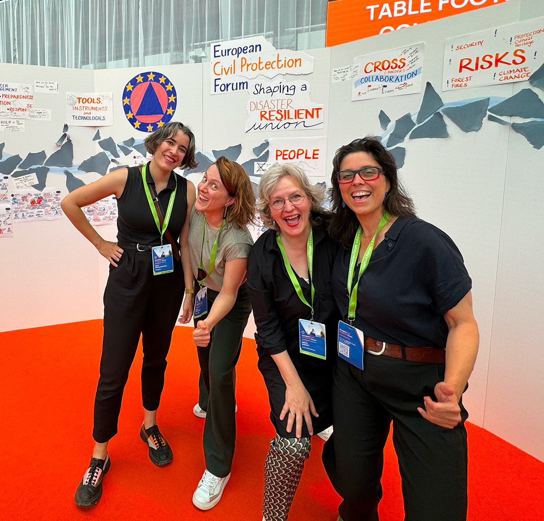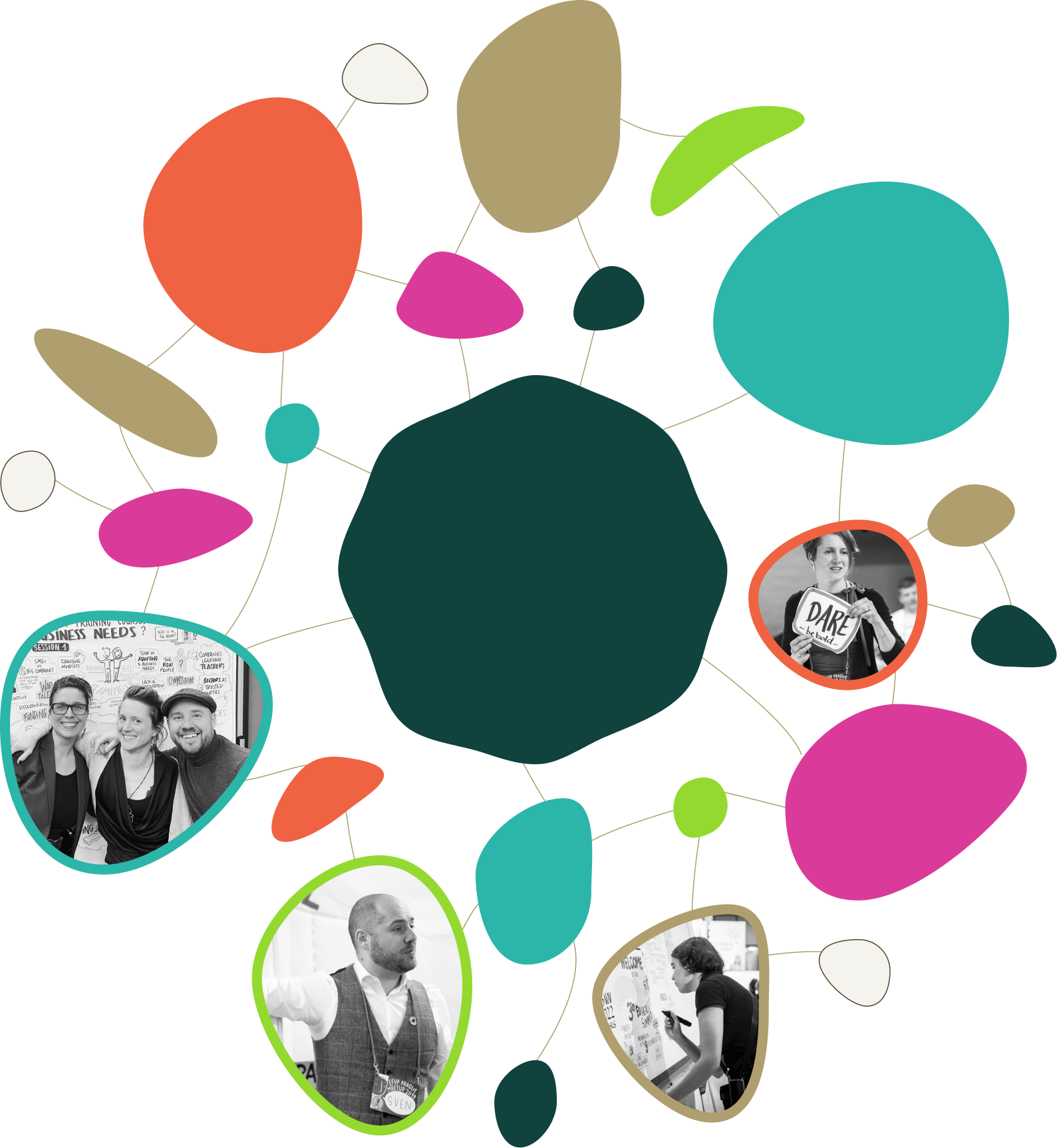 We achieve this with words, but even more so with visuals. We make the invisible visible. Sometimes quite literally — through visual harvesting and visual storytelling — but also by uncovering insights during vision sessions, team coaching, or even self- or team development training.