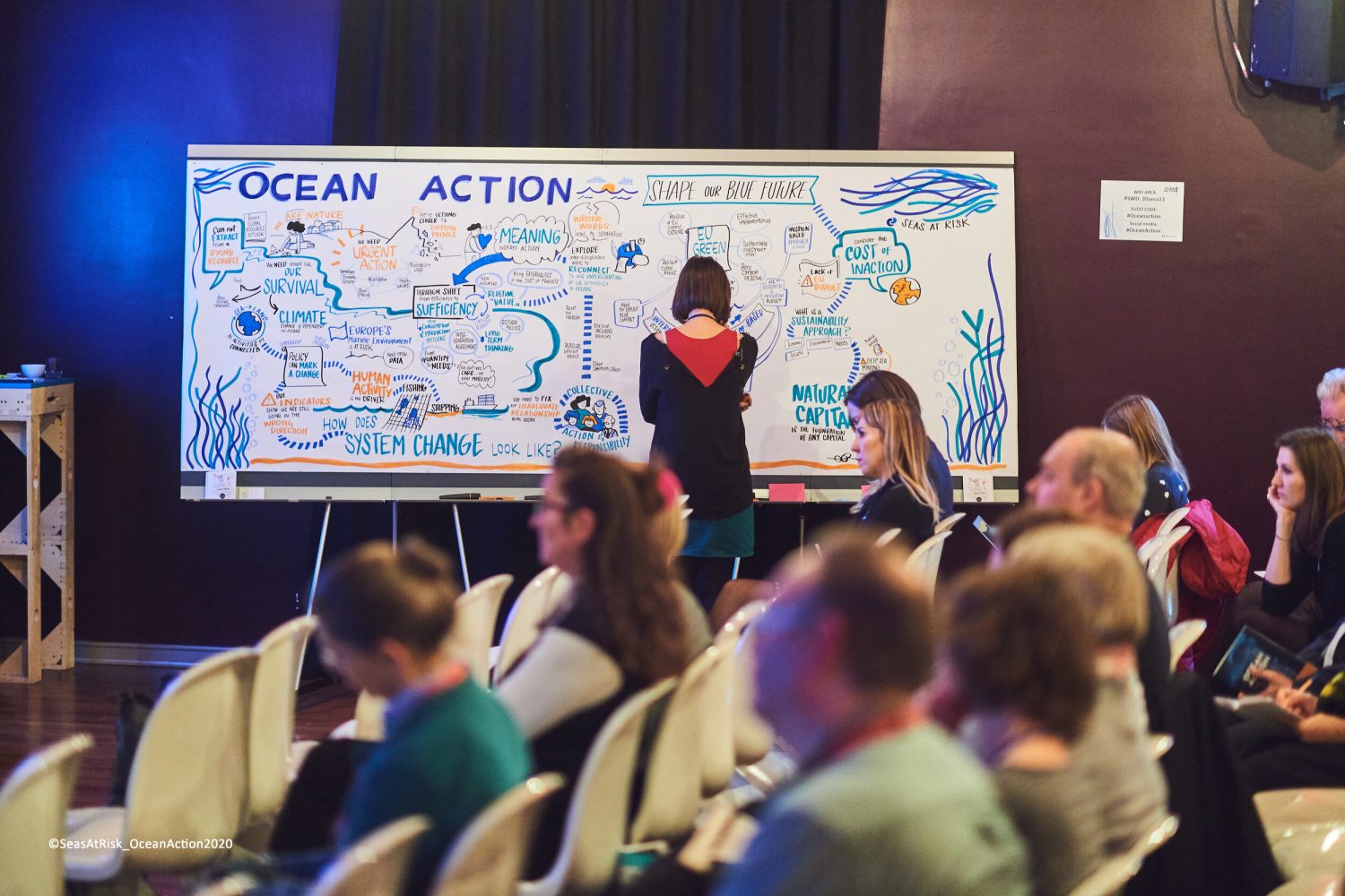 Seas at Risk wanted to hold a conference that would gather civil society organisations, scientific researchers, and EU policy makers and inspire them to contribute to a blue manifesto – a co-created document that would raise awareness about the need to care for our seas and ocean. It would also reflect the collective intelligence and dedication of participants to work towards this common purpose. As Visuality specializes in group processes and leads with a sustainable mindset, the synergies between Seas at Risk and the our team were a match from the start.