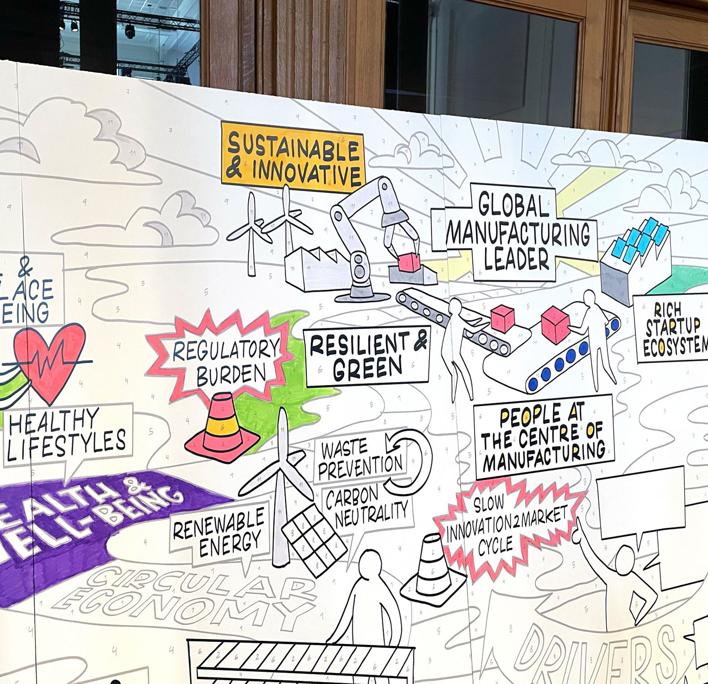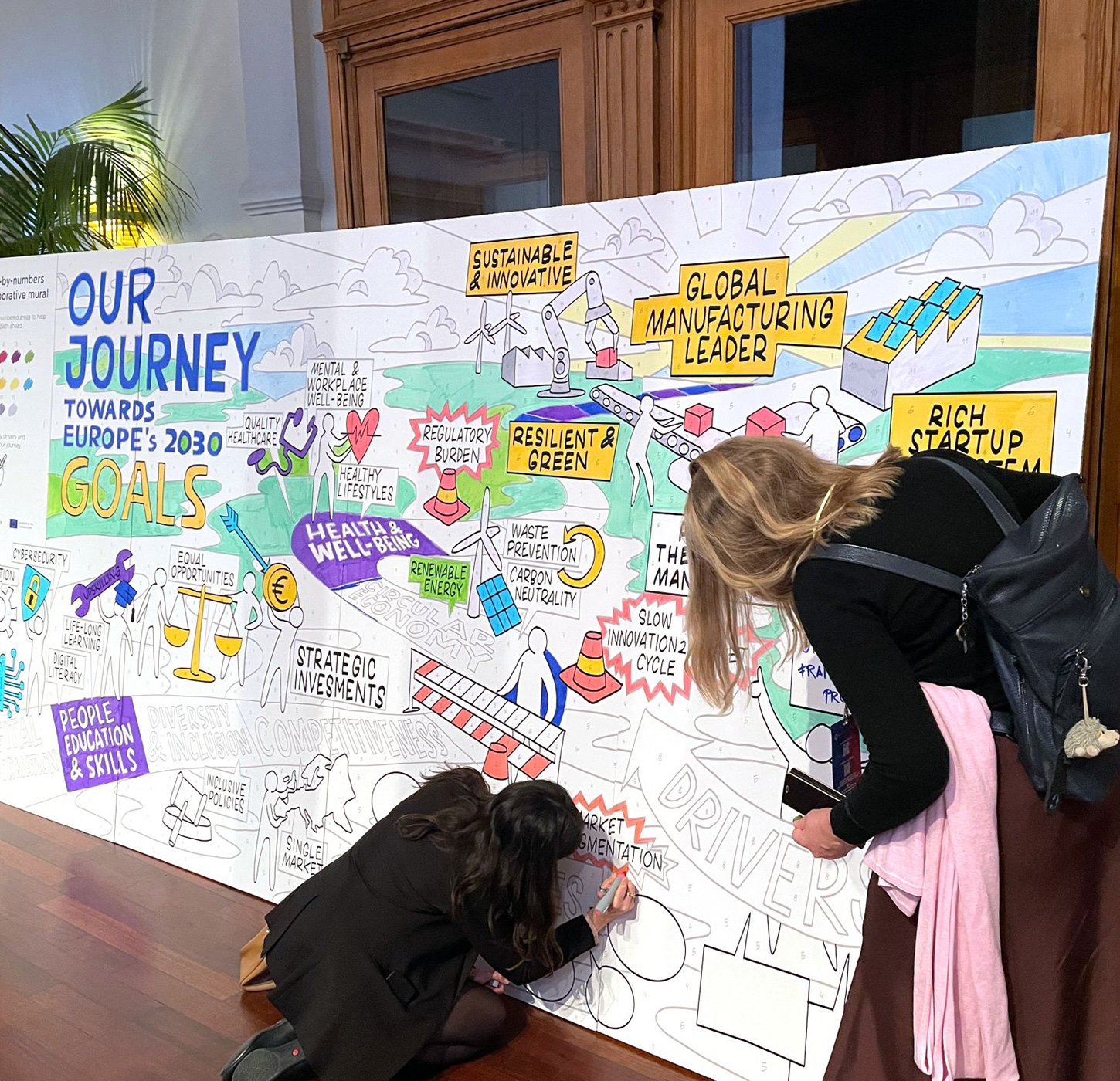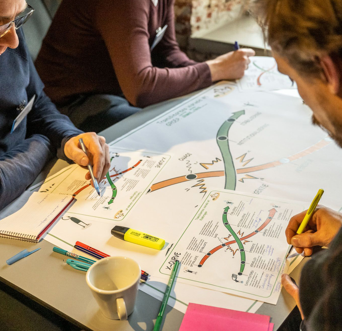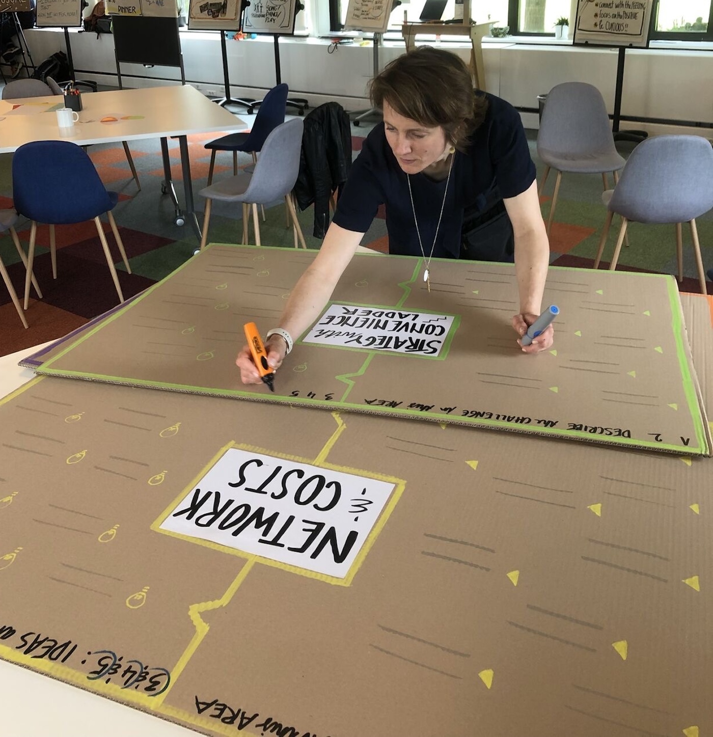 Interactive boards and templates give people a concrete starting point, a shared canvas, a structure, a prompt that brings focus and flow to the discussion. Whether it’s a large-format workshop sheet guiding a group through a tough conversation, a playful board that invites feedback in the hallway, or a personal template that helps someone reflect in their own space, each one is designed to unlock participation.