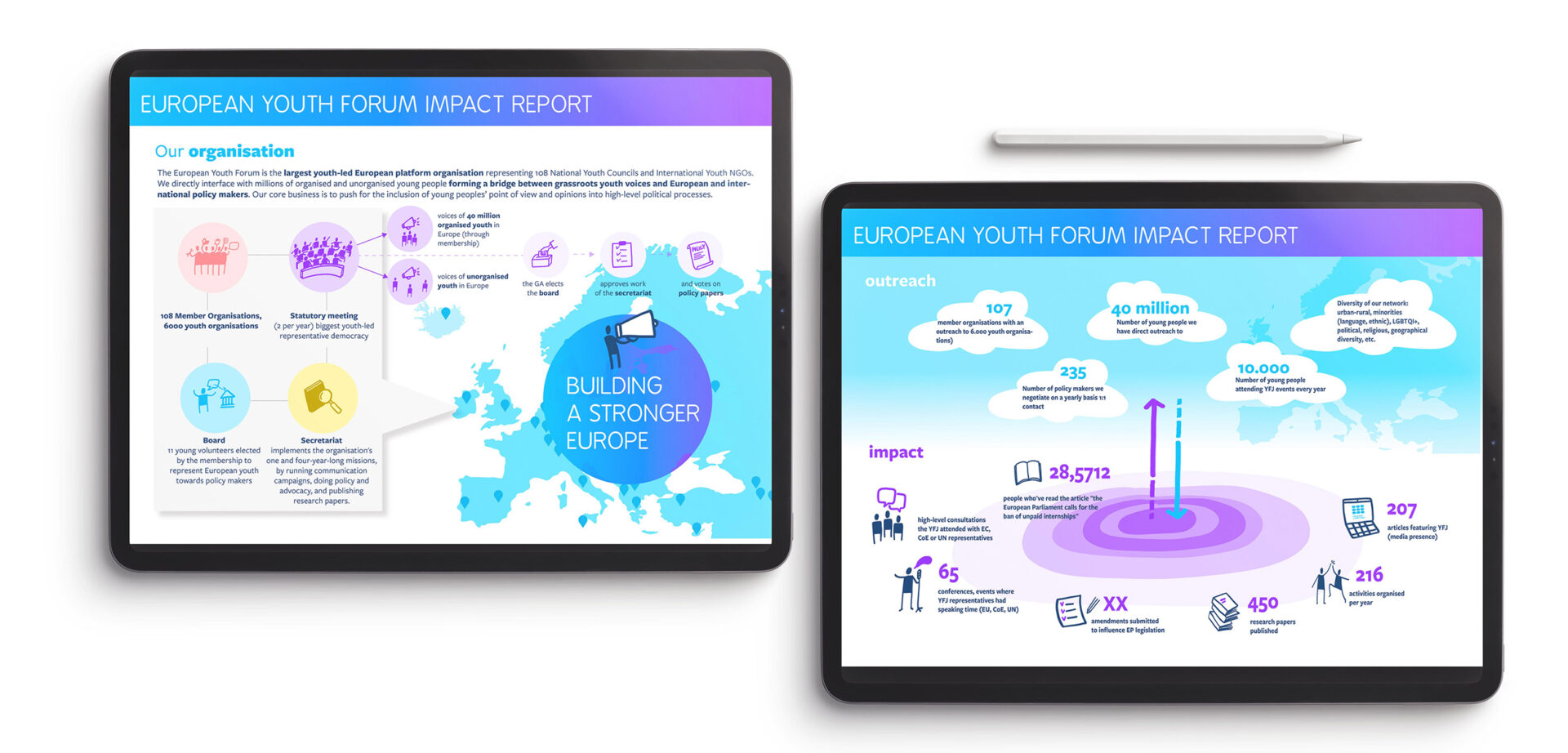 We live in a world where the flow of information never stops. Dashboards, spreadsheets, endless reports, it’s easy to get overwhelmed, and even easier to lose the thread. Data visualisation helps to turn data into clarity. Not by oversimplifying it, but by combining solid visual design with the power of storytelling. We guide your audience through the numbers — connecting dots, highlighting meaning, and showing the bigger picture behind the data. Whether you want to inform, persuade, or spark action, we help you make sense of complexity and make it easy to remember.