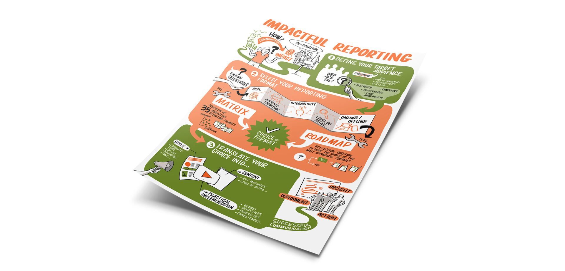 Go beyond the Canva shortcut. No templates, no copy-paste icons. We listen, ask the right questions, and co-create a visual that fits your story. One that works for your desired format: on the wall, on poster, on a website or in a report. Your infographic becomes something people actually use, not just glance at.
