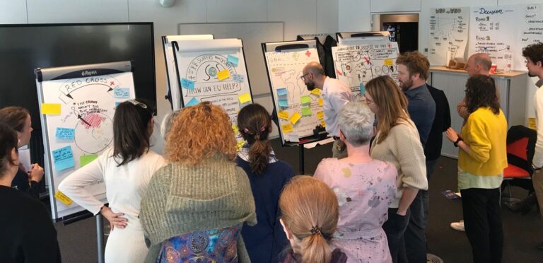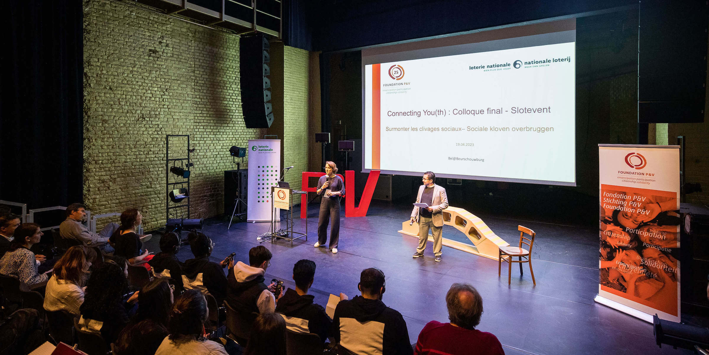 Thanks to our diverse team, we were the Swiss Army knife of this conference. In preparation, we created a fun invitation video with the young people, designed the bilingual program booklet, provided visual signage to guide participants at the Beursschouwburg in Brussels. Furthermore, we set up interactive boards for participants to share their views on this issue, moderated the conference and facilitated a fishbowl debate. In addion, we captured the outcomes of the debates in a number of graphic recordings, provided general coordination and guidance for the young people. In short, it was a comprehensive project, and we are proud to have helped P&V achieve their goals.